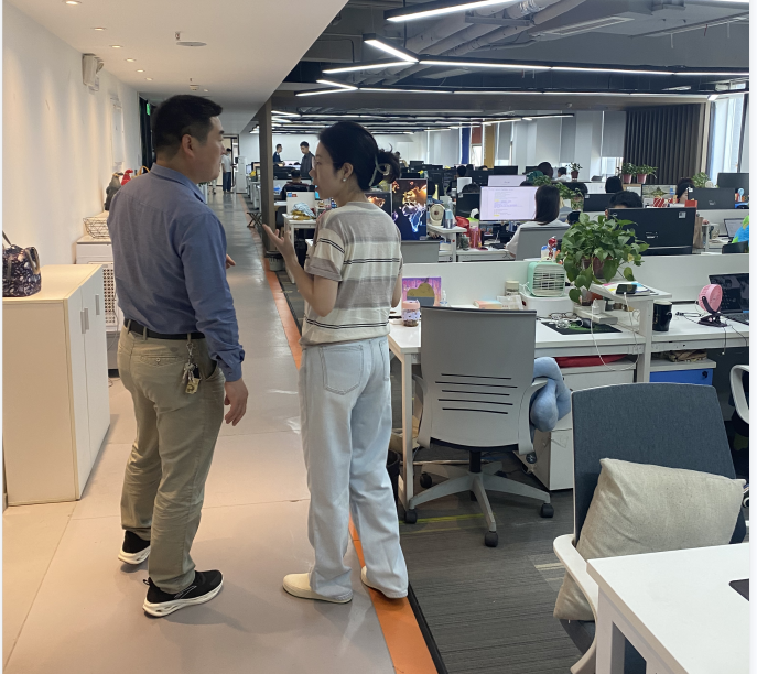会谈前,石书记一行在小魔兽数字科技(郑州)有限公司人资总监侯雪姣女士的引导下详细参观了各办公区、活动区等。并为石书记介绍了小魔兽数字科技有限公司的发展历程以及公司的业务情况。