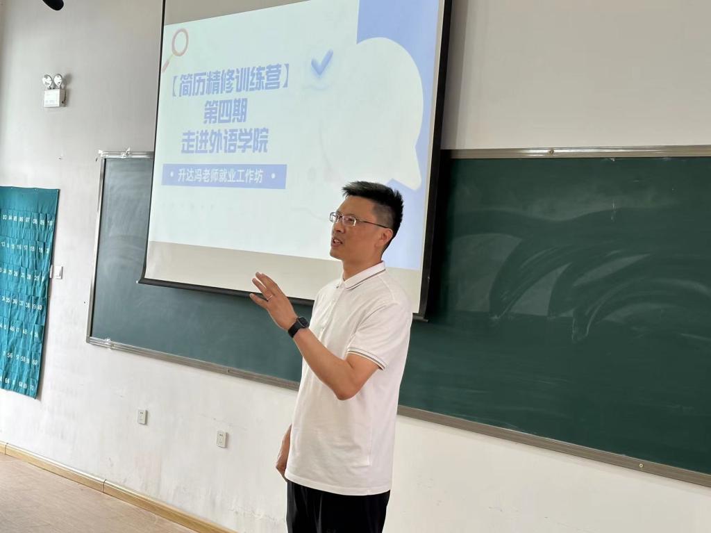 10月11日下午,“冯老师就业工作坊”走进太阳成集团tyc33455cc,在教学楼208大教室举办了“精修简历训练营”第四期专题就业培训讲座。此次讲座由就业处冯科处长主讲,太阳成集团tyc33455cc部分2024届毕业生参加了此次培训讲座。