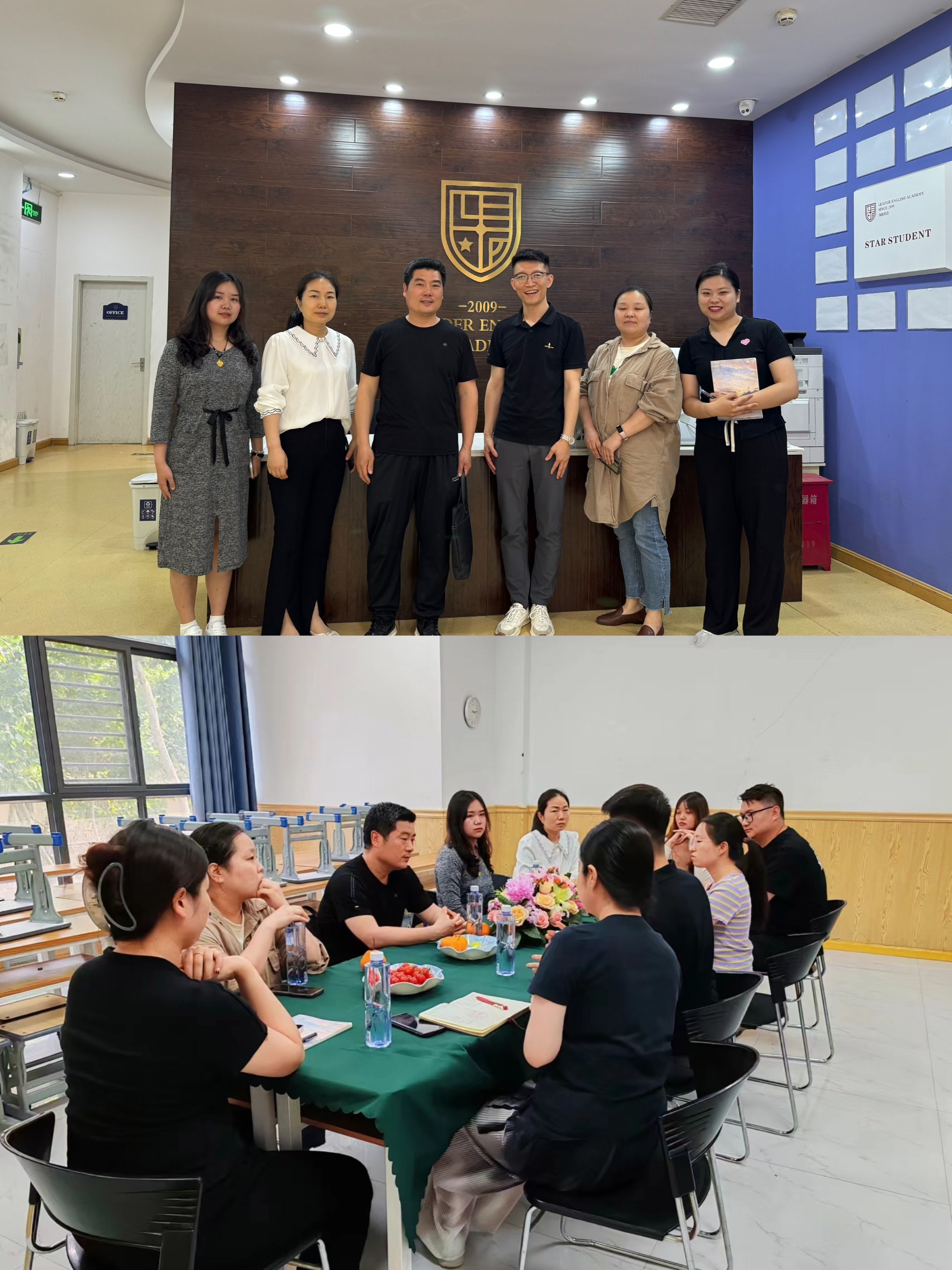 在领跑英语互助路校区张照阳董事长的陪同下,石书记一行参观了机构的教学环境、实训设施及企业文化展示区,详细了解了机构的发展历程、团队力量、课程设置及学员培养情况。随后,双方就人才培养、课程设置、实习实训等方面进行了深入交流,并就未来合作达成了初步意向。
