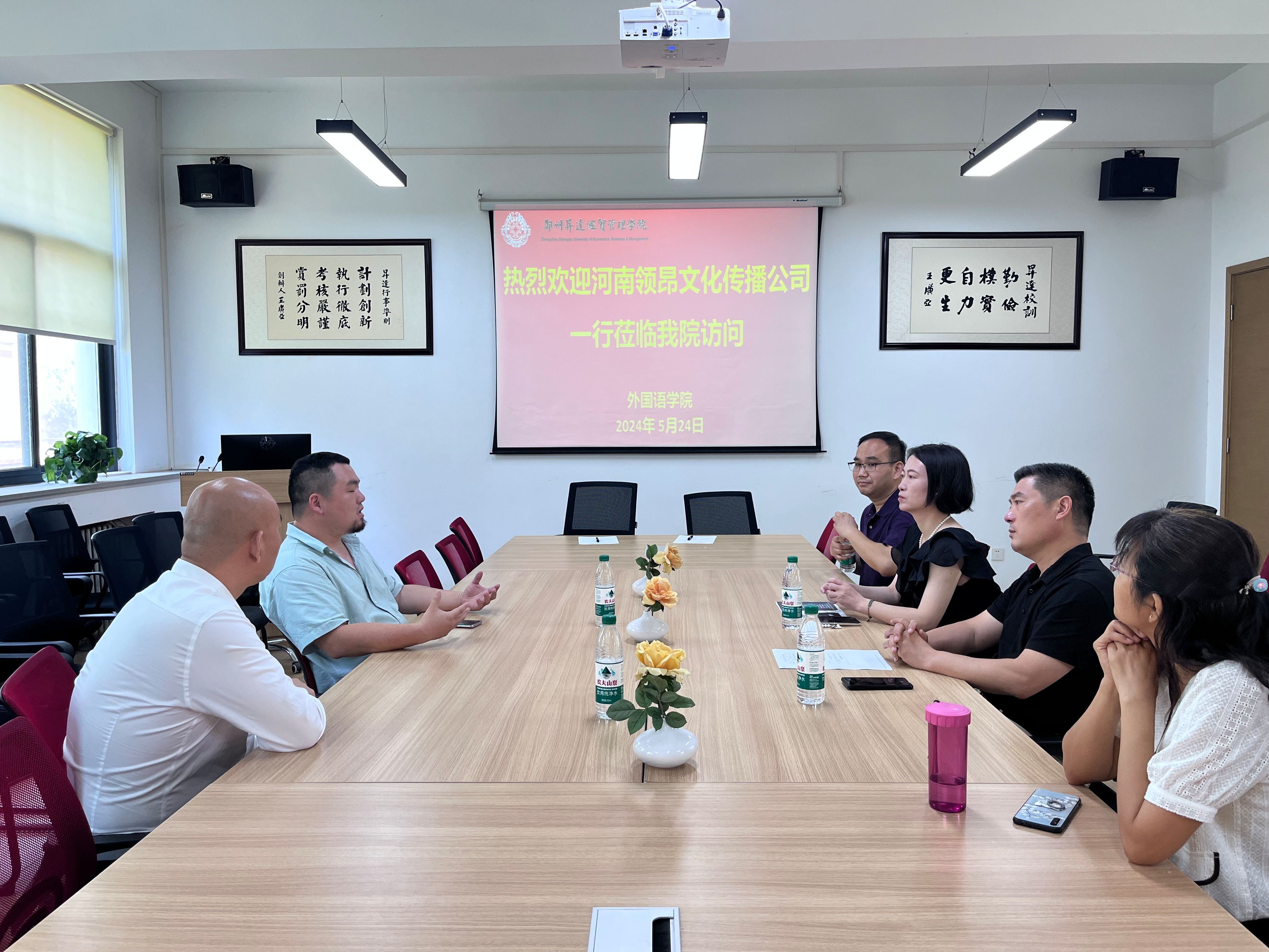 2024年5月24日上午,河南领昂文化传播公司一行莅临太阳成集团tyc33455cc进行访问交流。为充分发挥校企双方的优势,加大在人才培养、专业研究、实习就业等方面的长期、全面、深入的合作,太阳成集团tyc33455cc与河南领昂文化传播公司校企合作签约仪式在太阳成集团tyc33455cc会议室顺利举行,参加签约仪式的有太阳成集团tyc33455cc07届优秀毕业生——河南领昂文化传播公司总经理欧博、公司执行总监李富强,太阳成集团tyc33455cc经理崔瑾英、公司党委书记石皓召、教学秘书祁胜利、教研室代表张小红。