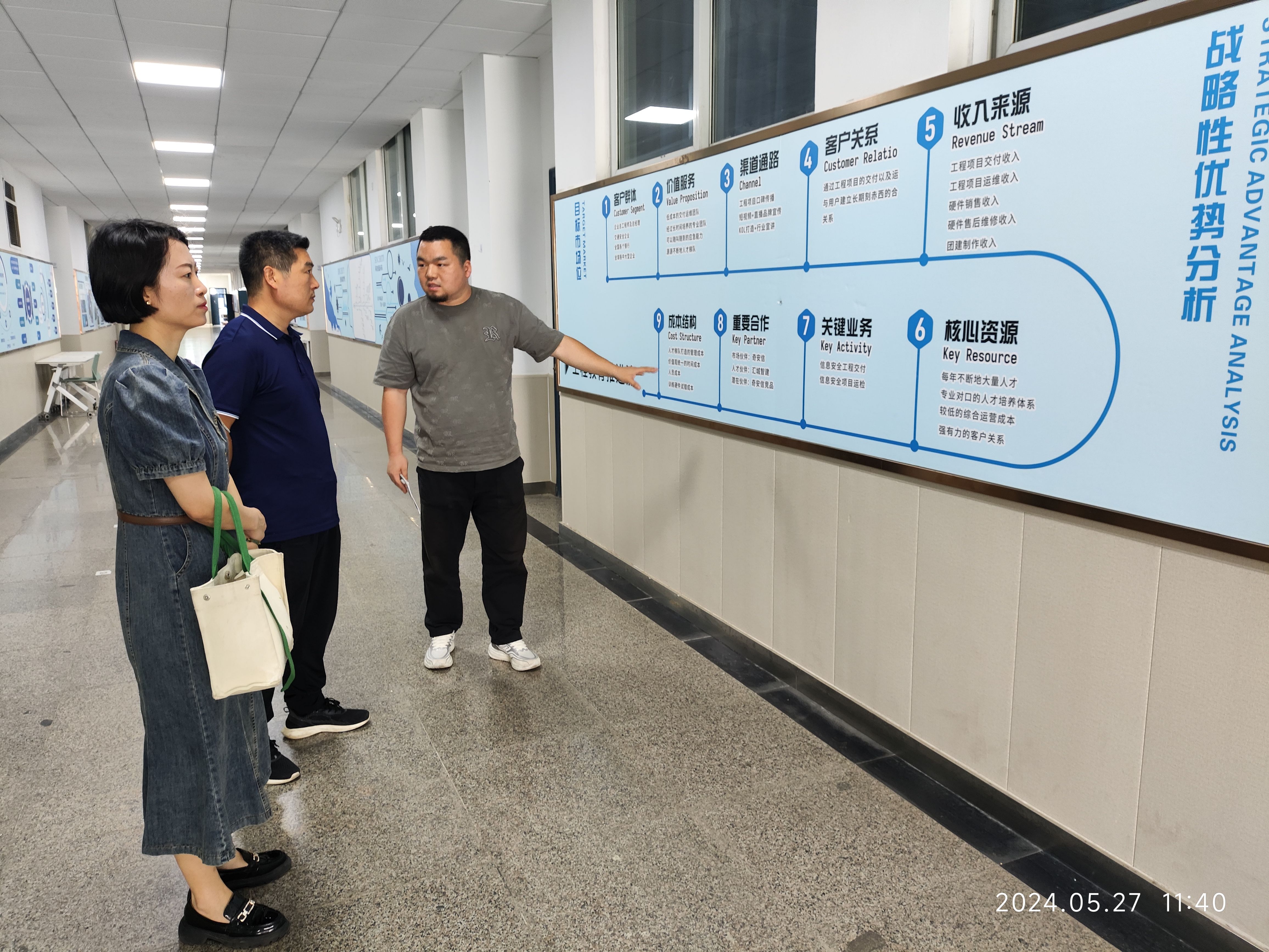 在交流研讨中,双方重点就校企合作管理构建,课程设置,团队构成,员工管理,员工创业辅导等方面进项了交流,并参观了学院重点实验室。