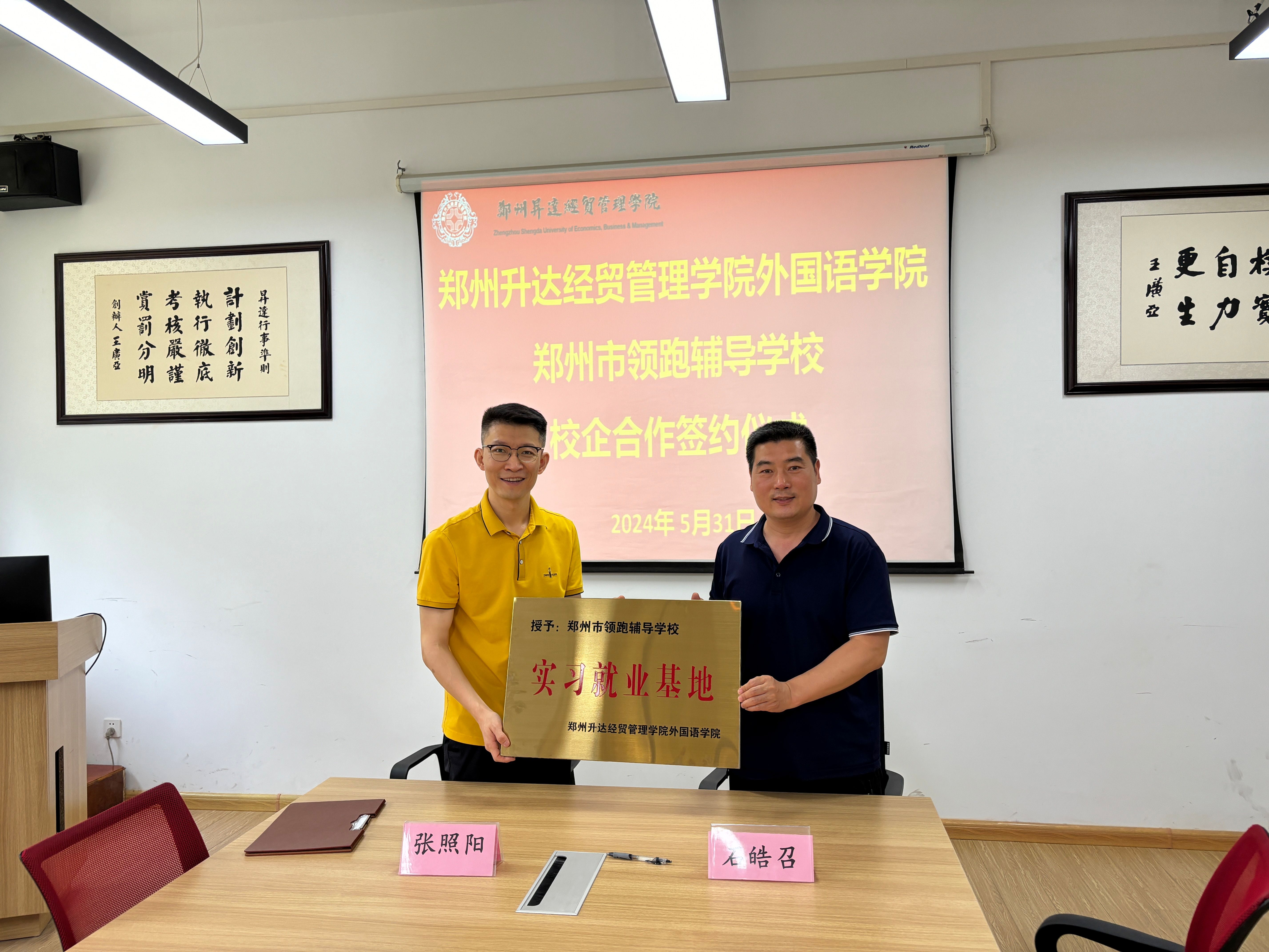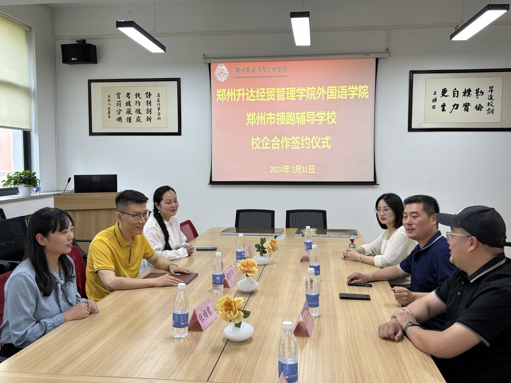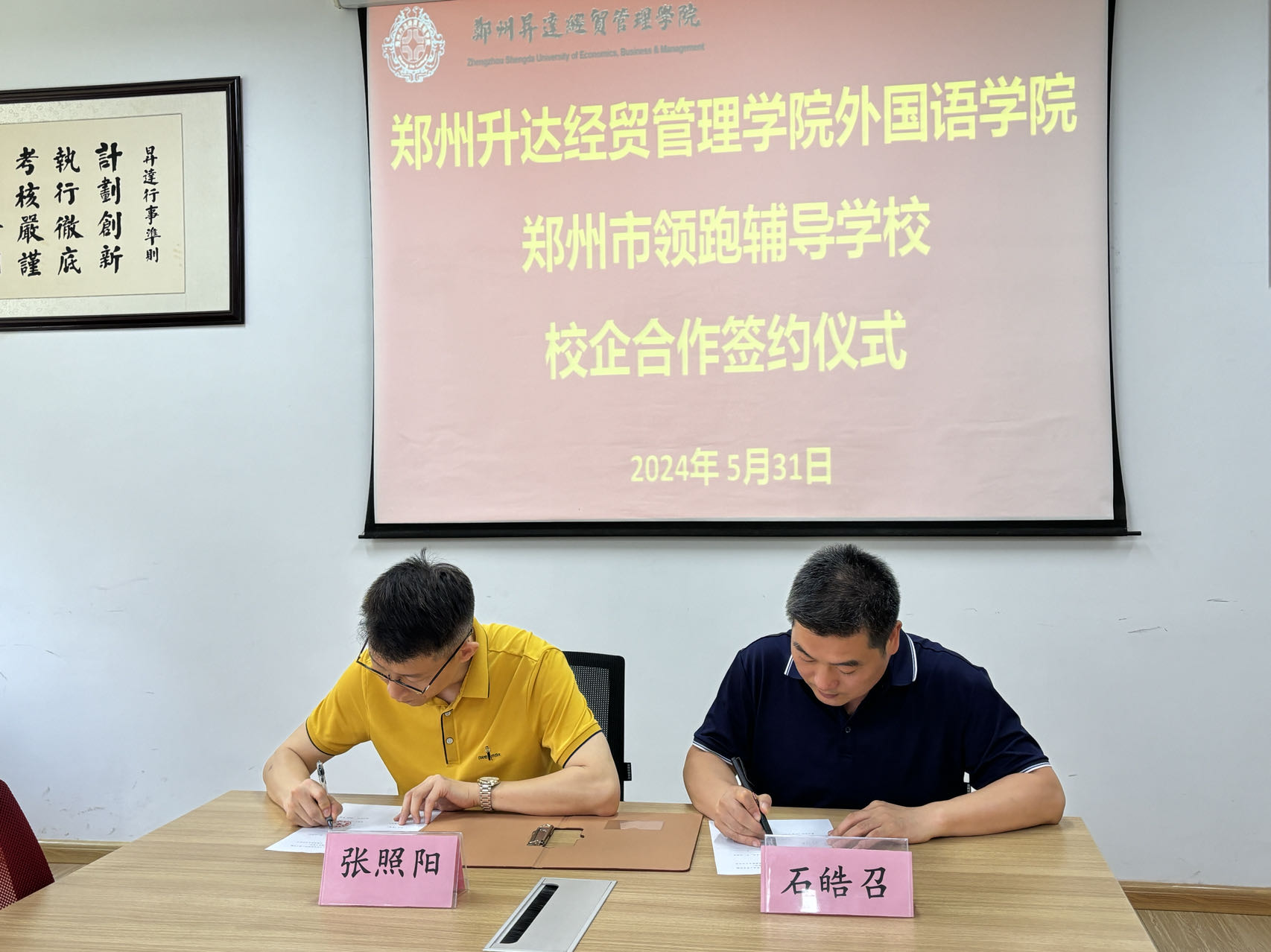 2024年5月31日,太阳成集团tyc33455cc与郑州市领跑辅导学校的校企合作签约仪式在太阳成集团tyc33455cc会议室206隆重举行。此次合作标志着双方在教育领域深度合作、共谋发展的新征程。