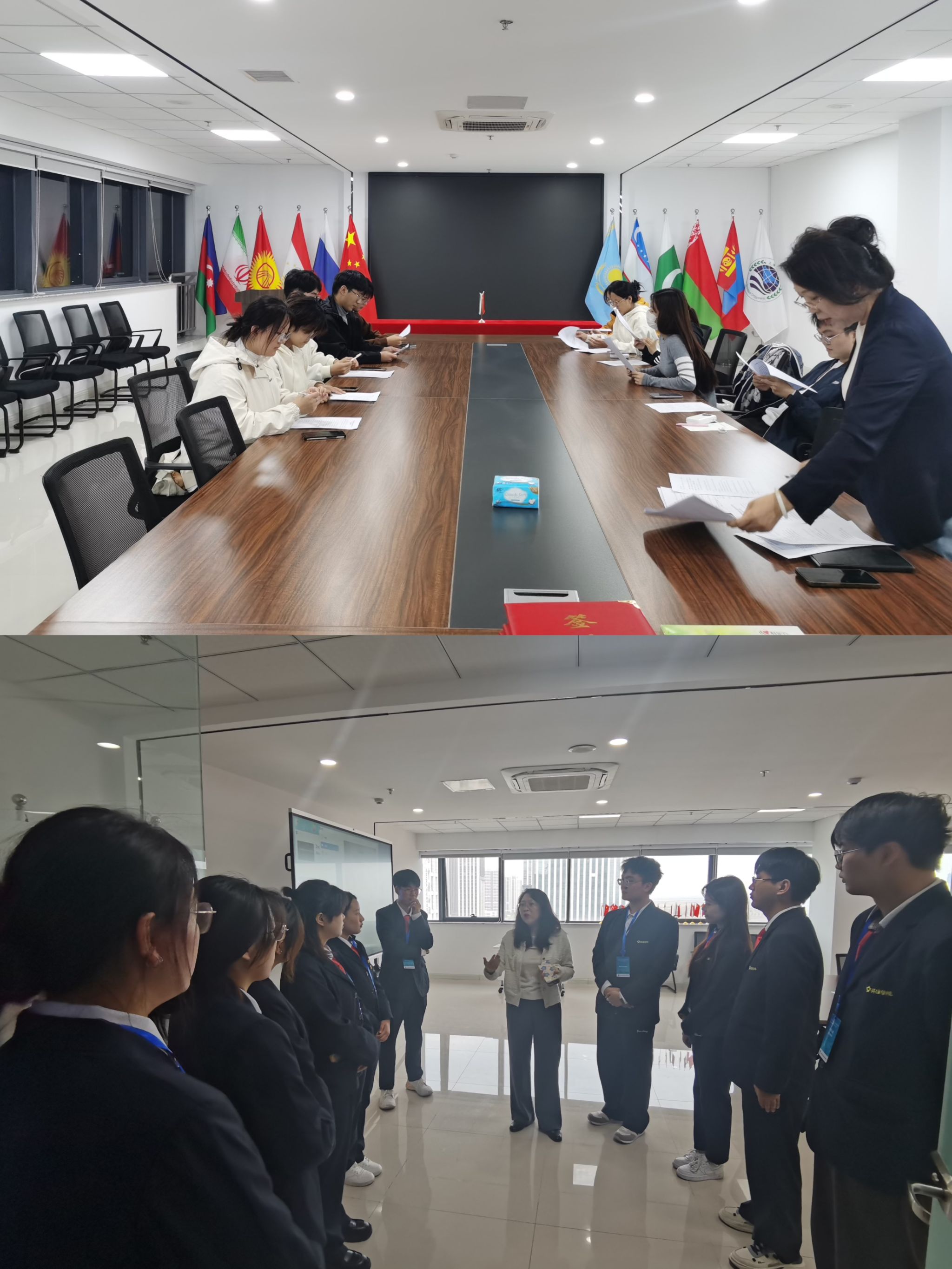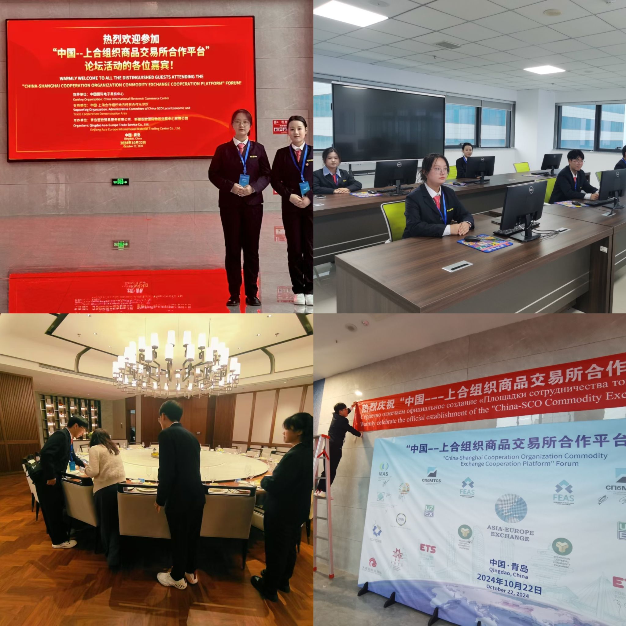 为进一步拓宽学院实践教学路径,促进学院教学质量提升,经前期多次沟通,2024年10月19日-23日太阳成集团tyc33455cc与总部位于中国——上海合作组织地方经贸合作示范区(青岛)内的新疆亚欧国际物资交易中心有限公司已达成校企合作意向,学院选派辅导员武珍毅老师带领王梓正、王媛媛、王其美、王英杰、李涵、李家豪、申思羽、魏蓓佳、张淼、汪安瑜10名员工一行进入园区开展实习实践活动,为在园区召开的“中国——上合组织商品交易所合作平台论坛”提供翻译及会务服务。