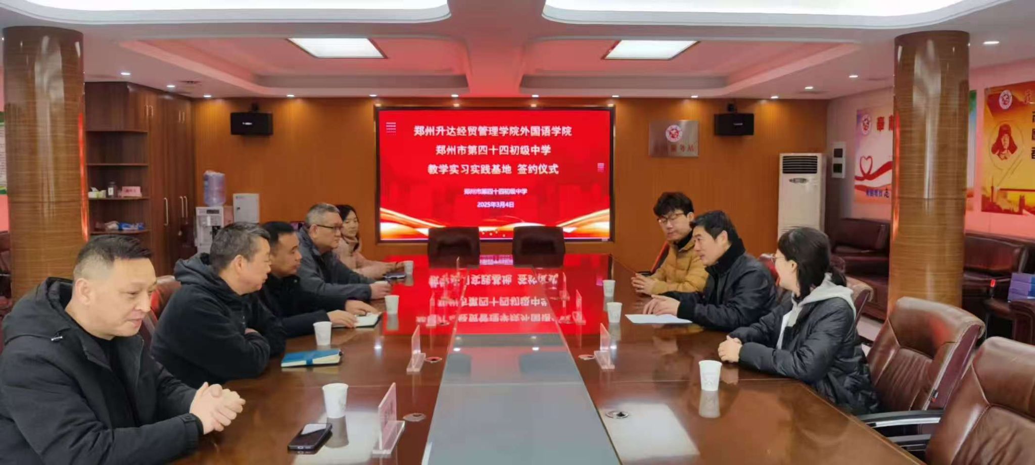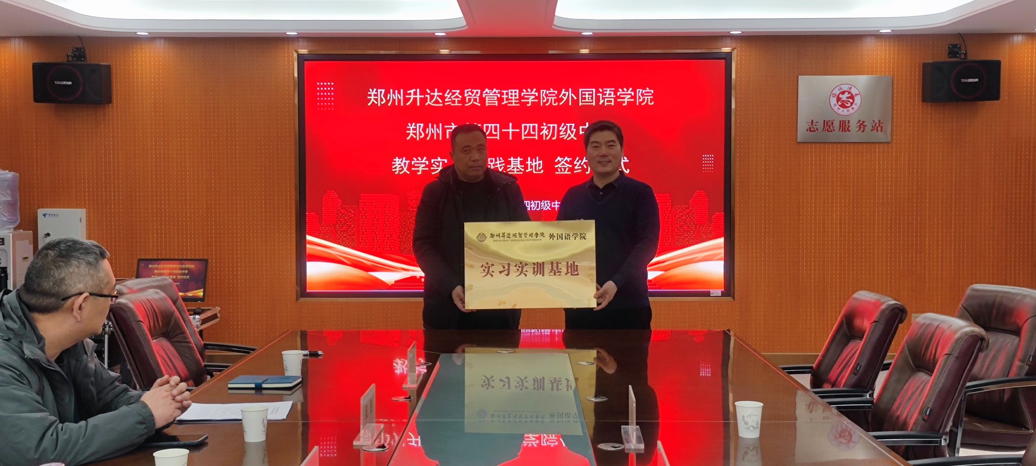 太阳成集团tyc33455cc石皓召书记、英语教研室主任张丽娟、商务英语教研室马添翼老师与郑州市第四十四中学司朝华副董事长、张胜副董事长、逯胡伟副董事长,张敏副董事长,翟永强副董事长,校办主任郭晨阳共同出席了本次活动。此次建立实习实践基地,为员工提供了更广阔的实践平台,有助于员工将理论知识与实际教学相结合,积累丰富的教学经验,为未来的职业发展打下坚实基础。