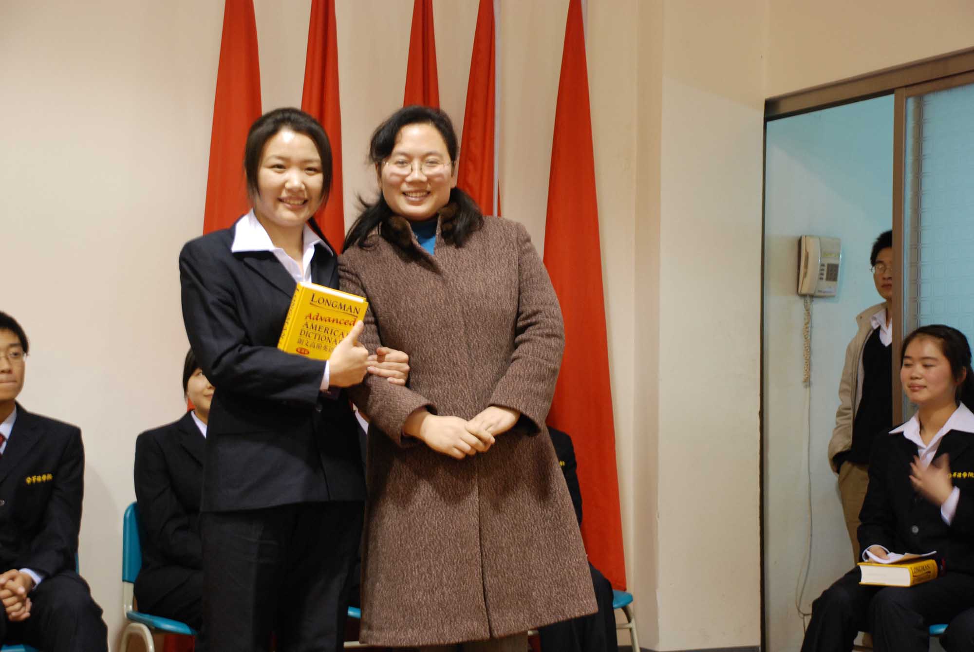 最终,来自商英三班的任明阳以标准的发音、活泼的动作、激情的语调,感染了在场的每一个人,赢得了第一名。来自商英三班的陈凡获得了第二名,来自商英一班的郭雅玉获得了第三名,来自科英班的程静获得了最佳内容奖,其他选手均获优秀奖。创办人代表王育文博士亲自为最佳内容奖获奖选手颁发了特别礼物,外语系主任张宝红为前三名颁奖。