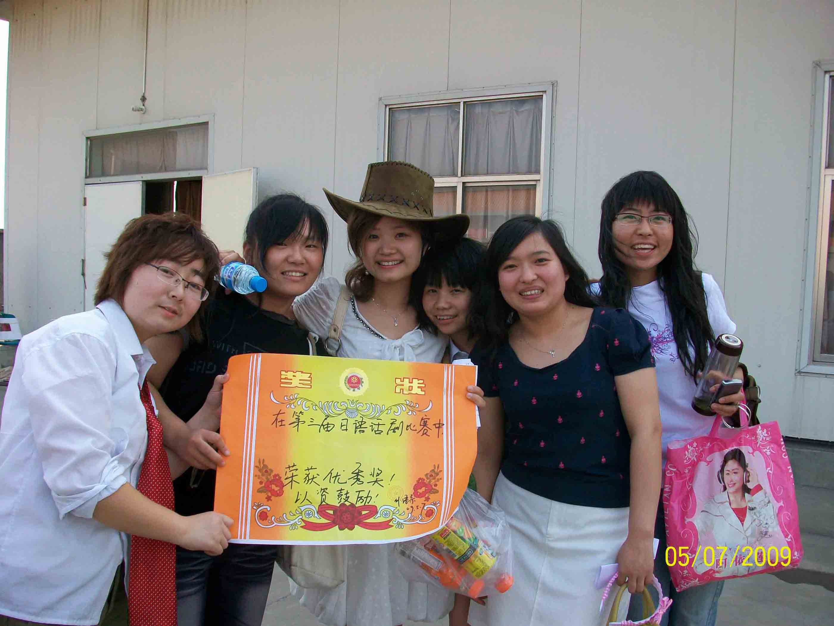最后,由水口老师做了精彩点评。经过激烈的角逐和评委老师们的认真评判,08日语一二三班和07日一班荣获优秀奖;07日二获三等奖;06日一荣获二等奖;06日二荣获一等奖。之后,进行了颁奖仪式,并由门胁、朋子、张宝红、陈贺丽、张彬老师分别为其颁奖。