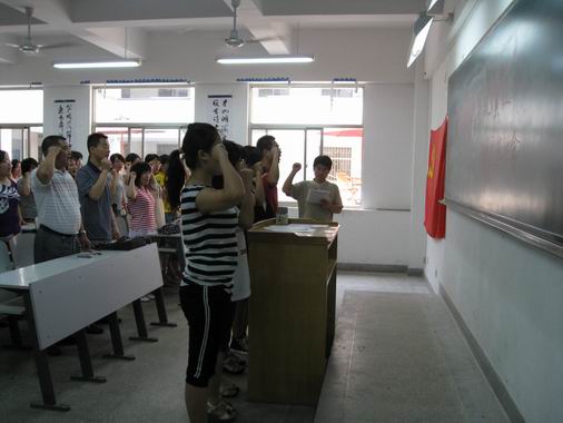 6月10日下午,三个毕业班员工党支部163名党员在支部书记李霄锋、刘贺猛、祁胜利老师的带领下,分别召开了最后一次支部党员民主生活会。民主生活会以“珍惜信任,牢记责任”为主题,旨在培养党员的党性观念、责任感和使命感。会上,在支部书记的带领下,大家重温入党誓词,时刻牢记对党旗的庄严宣誓,牢记自己的党员责任。共同学习了“党员文明离校”倡议书,并在“党员文明离校承诺书”上签名,表达了时刻发挥先锋模范带头和带动作用的决心和信心。系党总支书记乔卫参加了各支部的活动,对全体党员提出了殷切希望,表达了对大家的依依惜别之情和美好祝愿。