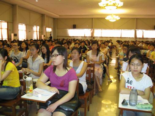 为促进我系考研考证及就业工作再创佳绩,6月11日下午,外语系在院龙湖报告厅成功举办了考研就业经验交流会,外语系名誉系主任申立教授、系党总支乔卫书记、部分辅导员及全体06级英语专业员工500多人参加这次经验交流会,交流会由教学秘书王堂华主持。