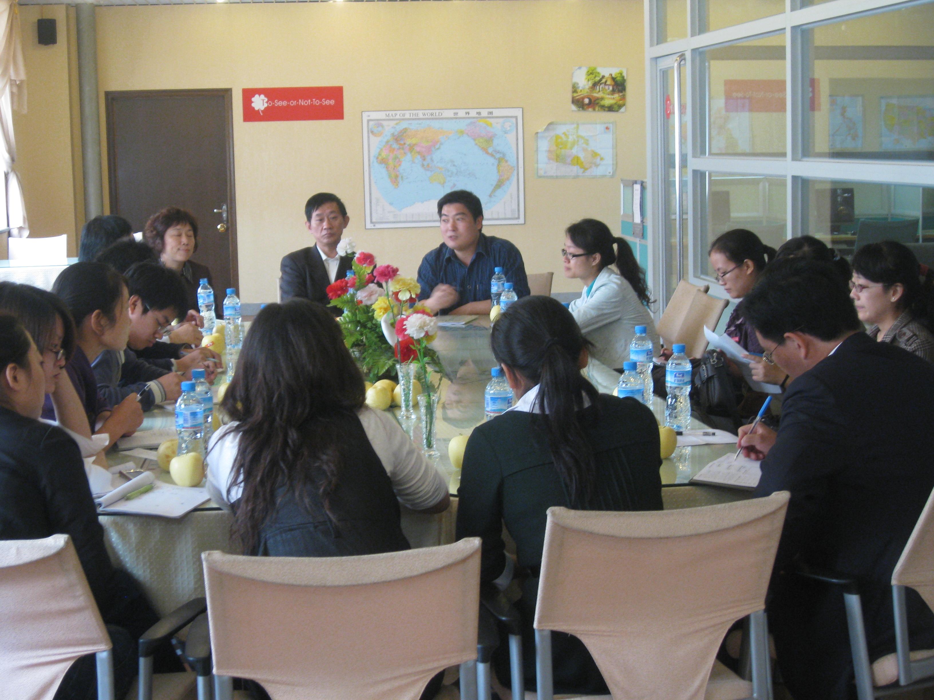 为喜迎祖国六十华诞,外语系党总支开展“感悟中华沧桑巨变,喜迎祖国六十华诞”系列活动。作为系列活动的重要组成部分,“喜迎国庆,共话巨变,展望未来”主题座谈会于9月25日上午在外语一号楼外语交流中心召开。系党总支乔卫书记、副书记石皓召、行政秘书惠凯赟老师、全体辅导员、教师党员及员工党员代表参加了会议。公司党委常务副书记戎庭银同志应邀参加了座谈会,与师生一起畅谈心得和体会。座谈会由系党总支副书记石皓召同志主持。