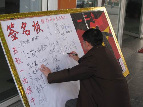 本次签名活动引起了广泛的关注与支持,也激发了同学们的爱国热情和为祖国未来奋斗的决心和信心,充分展示了当代老员工积极向上的精神面貌。(外语系通讯部 夏金焕)