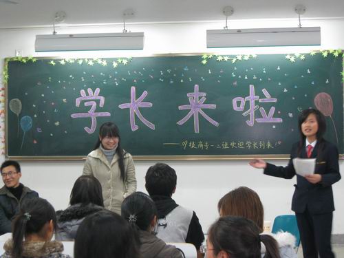 2009年12月3日晚上6:30,由外语系组织部主办的以“学长来了”为主题的外语系特色团校培训暨新老生交流会在外语楼A座的401、402、404和513教室成功举办。本次以促进学长们与大一新生交流学习为目的的活动有幸邀请到外语系李恒基老师,系团委副书记付大喜、组织部部长谷雨和上届MMD部部长兼辩论队队长付玉君等八位优秀的学长学姐。交流会由系团委组织部干事主持。