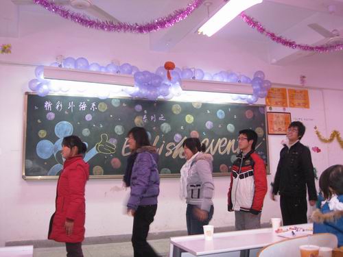 2009年12月9日晚上七点,在外语楼A座513教室,由外语系外交部组织联合09级日语一班和日语二班举办的“English Evening”隆重举行。本场晚会有幸邀请到的嘉宾有日语外教直樹和朋子老师,英语外教Ryan,外语系员工会主席乔羽和外交部部长魏雁楠。