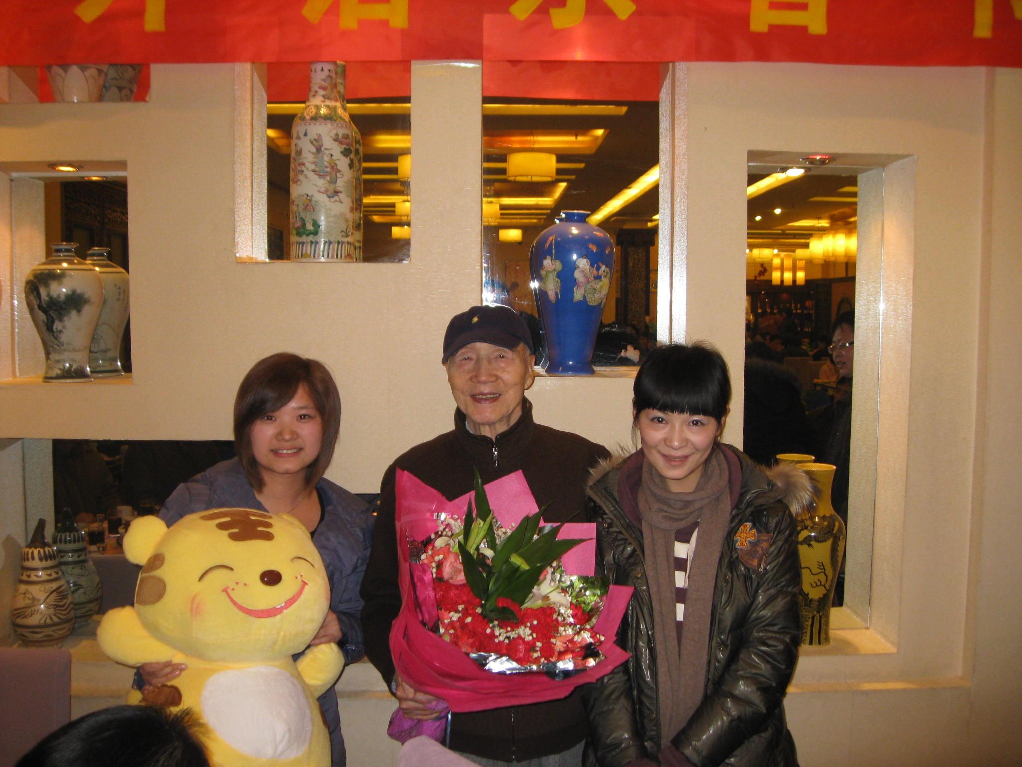 外语系教师代表为创办人敬献了鲜花,恭祝创办人虎年新春快乐,身体健康长寿,同时送上极具中国传统特色的吉祥虎。创办人欣然接受了礼物与祝福,并与老师合影留念。
