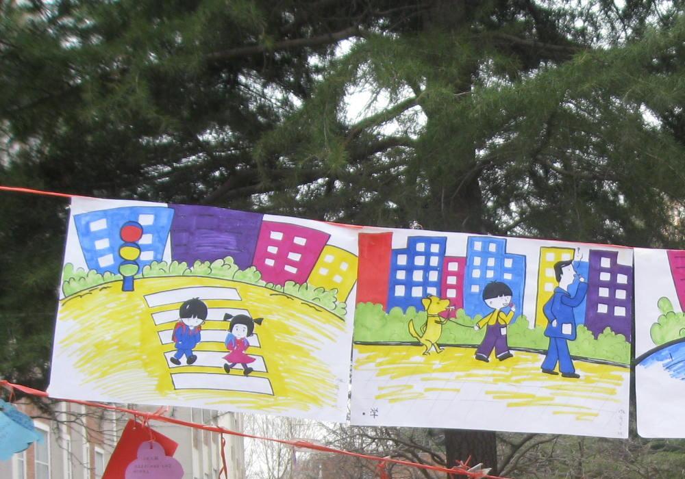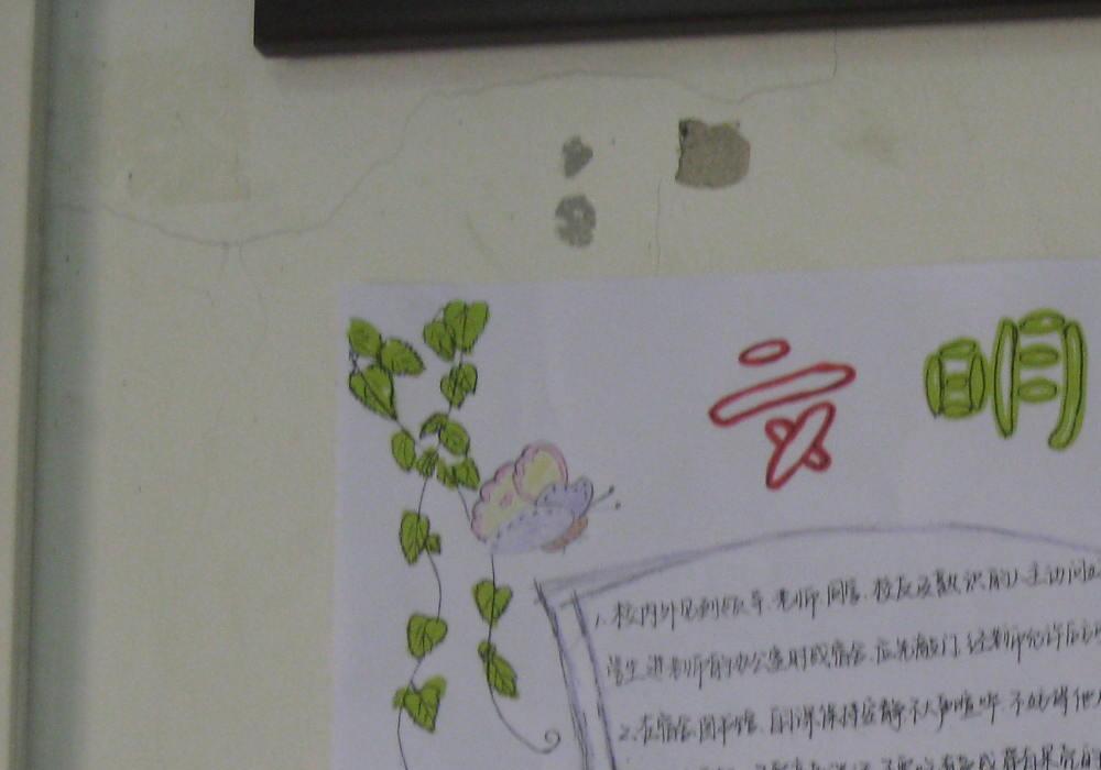 同学们集思广益,制作了各式各样充满教育意义的小卡片。其中有“节约用水从一点一滴做起”,“礼仪是一种文明规范是一种素质”等温馨语句。另外同学们还搜集了一些生活小常识以帮助大家,共同践行文明。