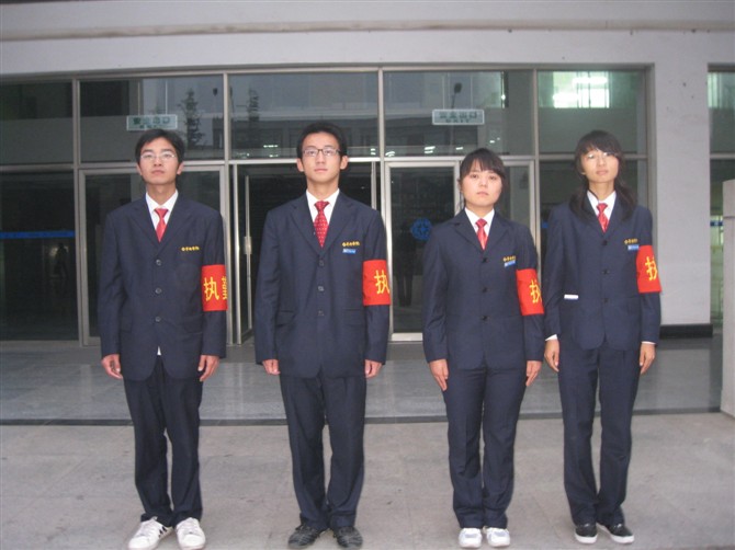 哪里有活动哪里就有风纪部人员忙碌的身影。任何一项活动的圆满举行都离不开风纪部的辛勤付出。清点人数、迎宾送客、维护现场、疏离拥挤人群,活动刚刚开始时他们忙着布置现场,活动结束了他们依然忙着清理现场,从头到尾他们都在不声不响的付出。当所有人在享受活动带来的乐趣时,他们只能远远观望并在心里默默祈祷活动的顺利进行。升国旗时,他们早于同学们半个小时之久到达升旗现场等待同学们的入场。无论是酷热的夏天还是北风呼呼的寒冬,他们都是一身校服,不吵热不吵冷,在任何场合他们都从没有忘记自己的职责。