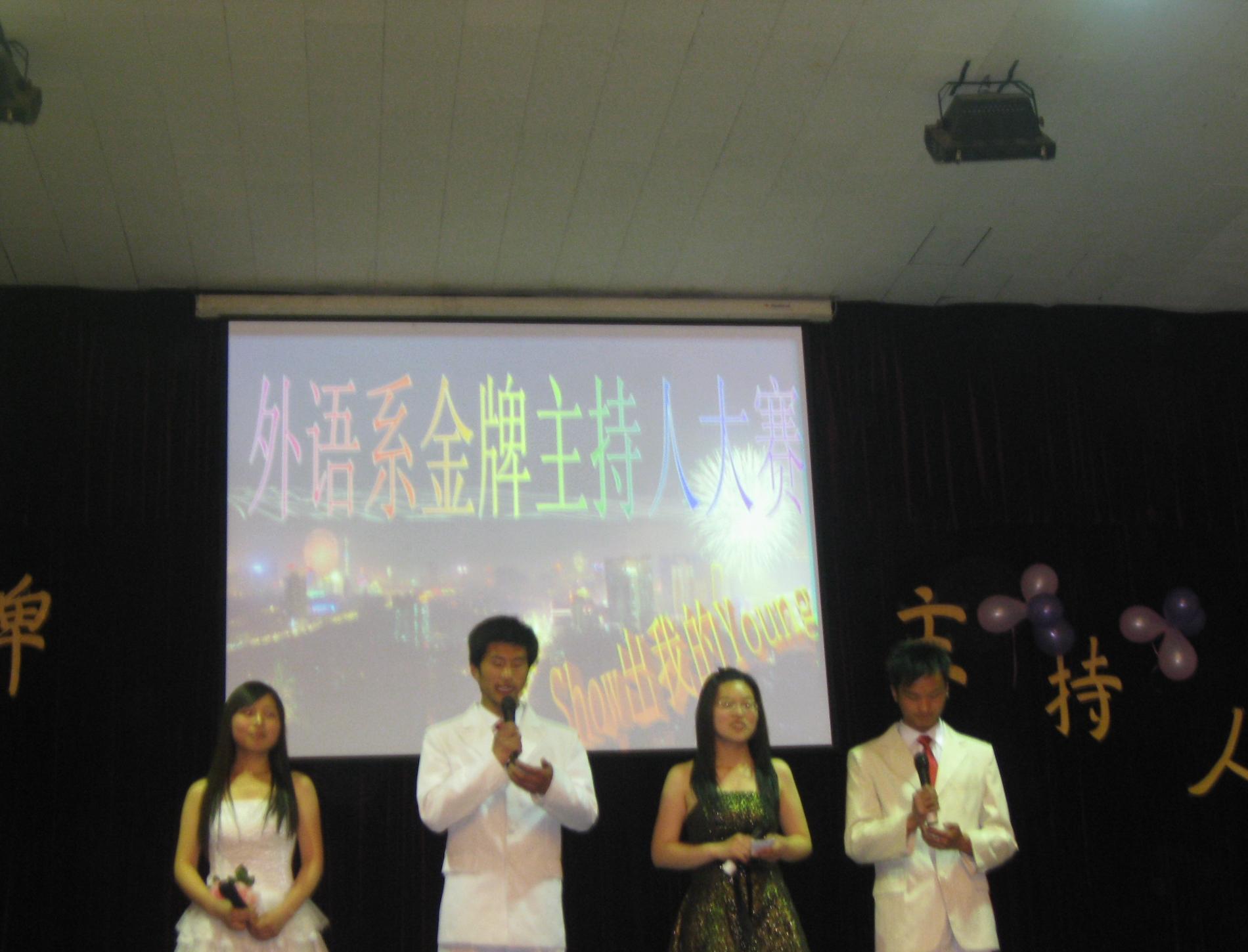 2010年4月8日晚上,外语系在灯火辉煌的龙湖报告厅举办了“金牌主持人大赛”决赛。