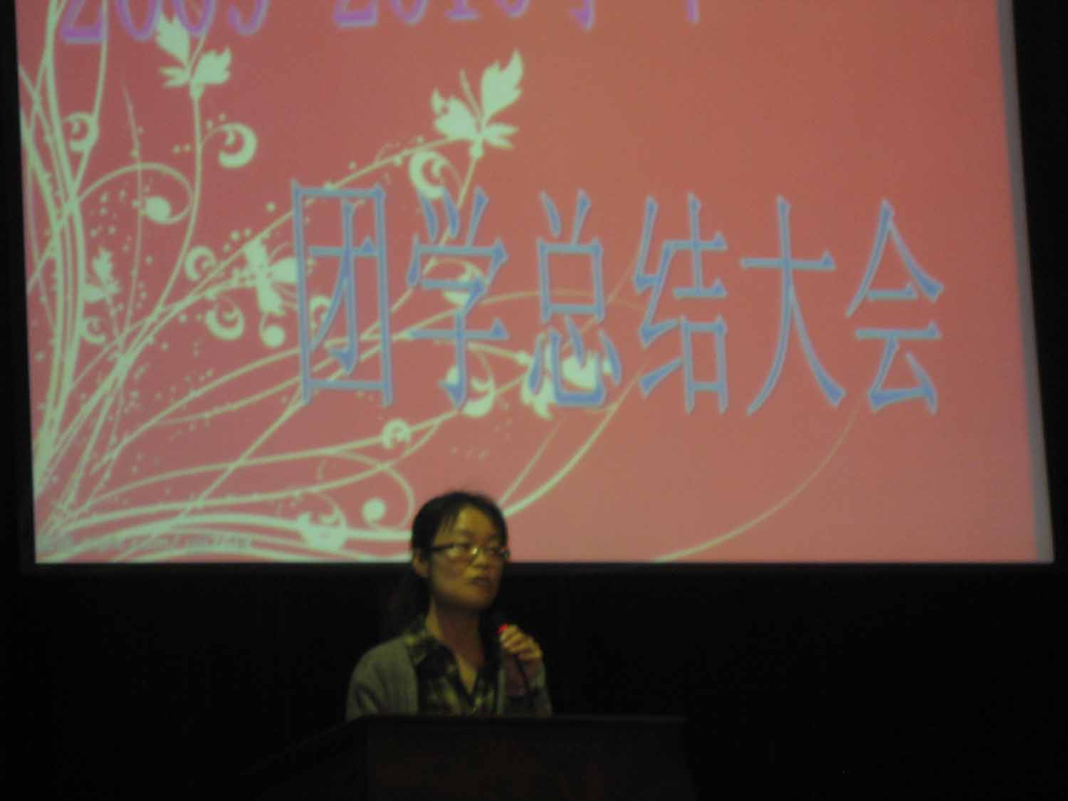 2010年5月20日晚上七点,外语系在龙湖报告厅举办了团学年度汇报总结大会。出席本次大会的有外语系党总支副书记石皓召老师,外语系团委书记兼行政秘书惠凯赟老师及各位辅导员老师,另外 外语系团委副书记付大喜、员工会主席团乔羽,副主席王琬涵、王婧、吴凯歌以及团学各部部长和干事,大一大二各班主要班干部等三百余人也参加了会议。