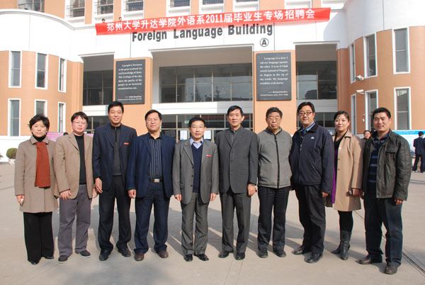 在学院各级领导的关心支持和帮助下,外语系2011届毕业生专场招聘会于11月18日顺利举行。招聘会当天上午,经理崔慕岳教授、戎庭银常务副书记、张金安副经理带领院办、总务处及人才招聘处等部门主管领导莅临会场,亲切看望参加应聘的员工,慰问招聘单位人员,并听取他们对毕业生就业工作的意见。