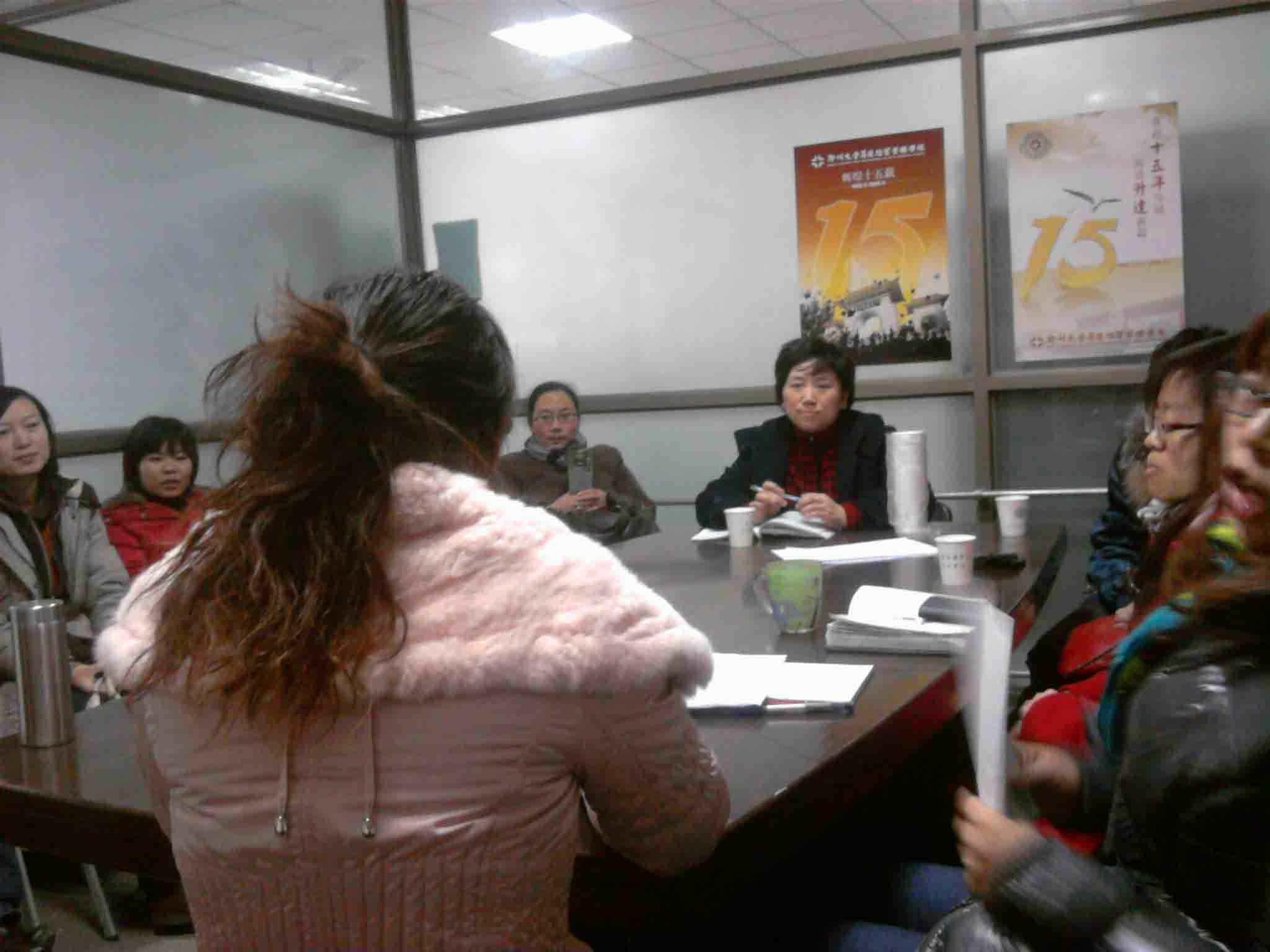 12月23日下午,外语系教工党支部在党总支办公室举行“深入学习王生英先进事迹,创先争优建新功”主题生活会。外语系教工党支部党员全部参加。会上,大家首先认真学习了王生英同志的先进事迹,并进行了发言讨论。大家认为,学习王生英,一是要学习她身残志坚,勇于克服困难的精神;二是要学习她爱岗敬业、坚持不懈的精神;三是学习她爱生如子、无私奉献的高尚师德。王生英无愧于我们这个时代教师的楷模,是我们每一个老师学习的榜样。在讨论的过程中,大家还把王生英的事迹当作一面镜子,认真对照自己工作上的不足,并表明了进一步完善的决心。