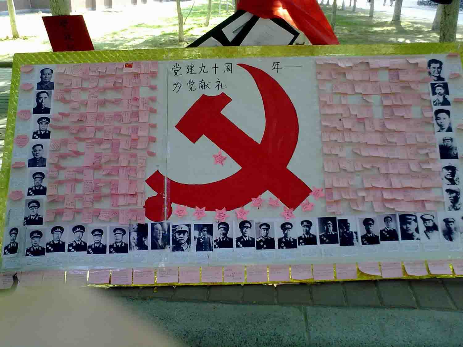 此外,本次活动还摆出展板,介绍了许多优秀共产党员,建国功勋的英勇事迹,使同学们再次感受榜样的力量。同时,展板上也满载了同学们对党的寄语,那些话温暖人心。“九十年的峥嵘岁月,您伴我们走过;九十年的光辉历程,您坚定执着。”作为当代老员工,外语学子始终坚持党的领导方向,并始终牢记自己肩负的责任和使命。