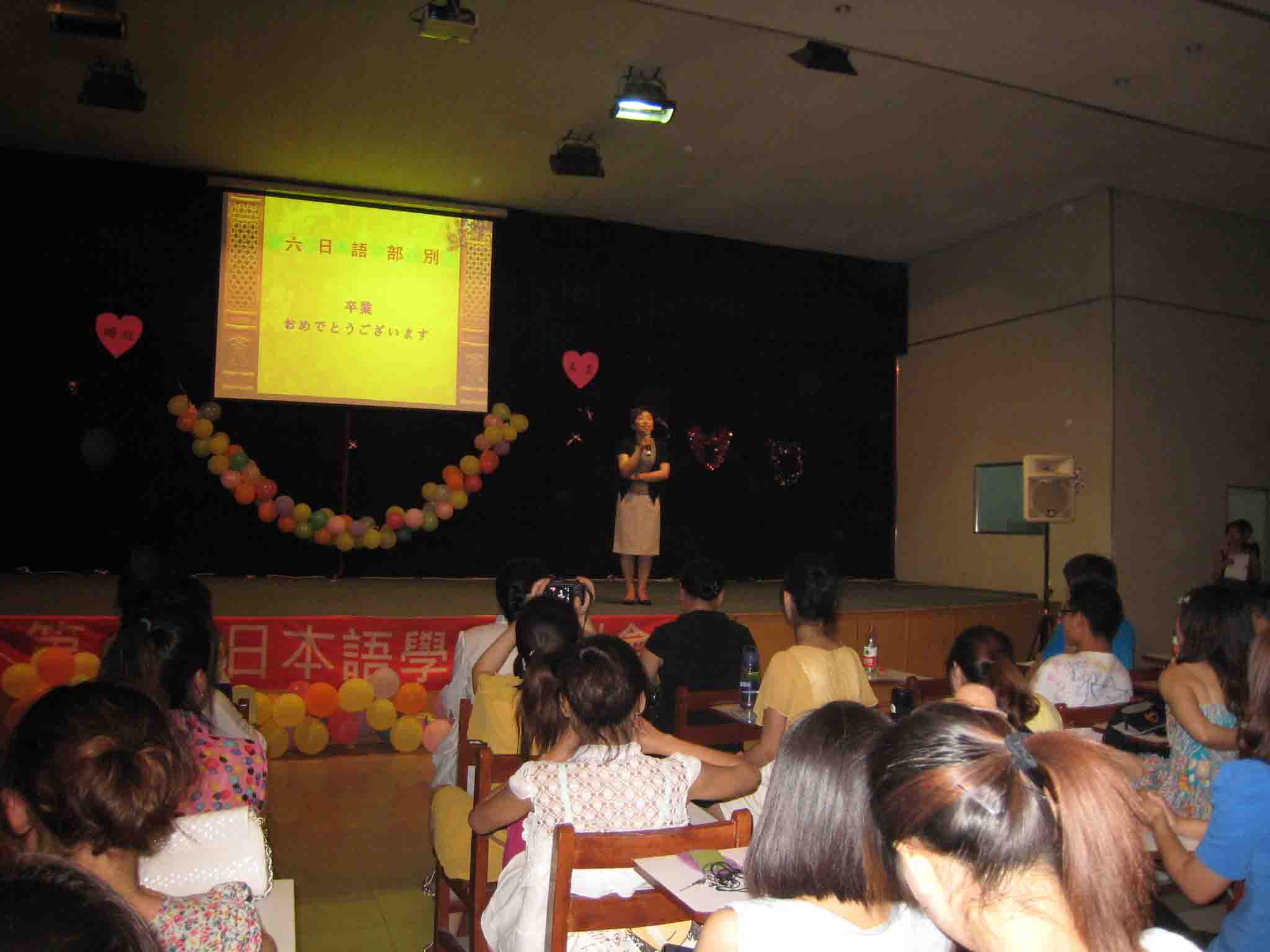 2011年6月15日晚7点第六届日语专业送别晚会在龙湖报告厅激情上映,外语系全体日语专业员工参加了本次晚会,外语系党总支乔卫书记,日语专业全体老师以及外教应邀出席。