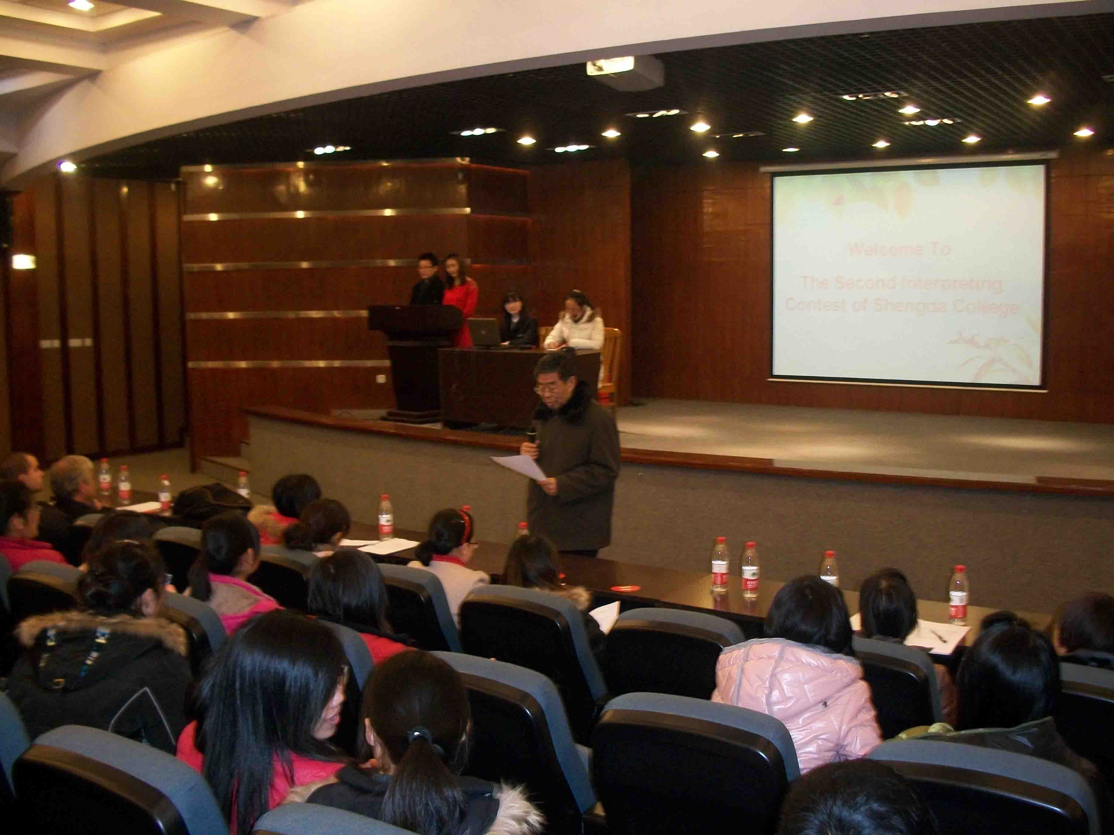 12月8日晚,由外语系主办的“升达学院第二届口译大赛”总决赛在外语楼多功能报告厅举行。外语系主任马秉义教授,外语系专职教师鲁东副教授,口译专业张丽娟老师、牛文文老师应邀参加了本场比赛并担任嘉宾及评委。