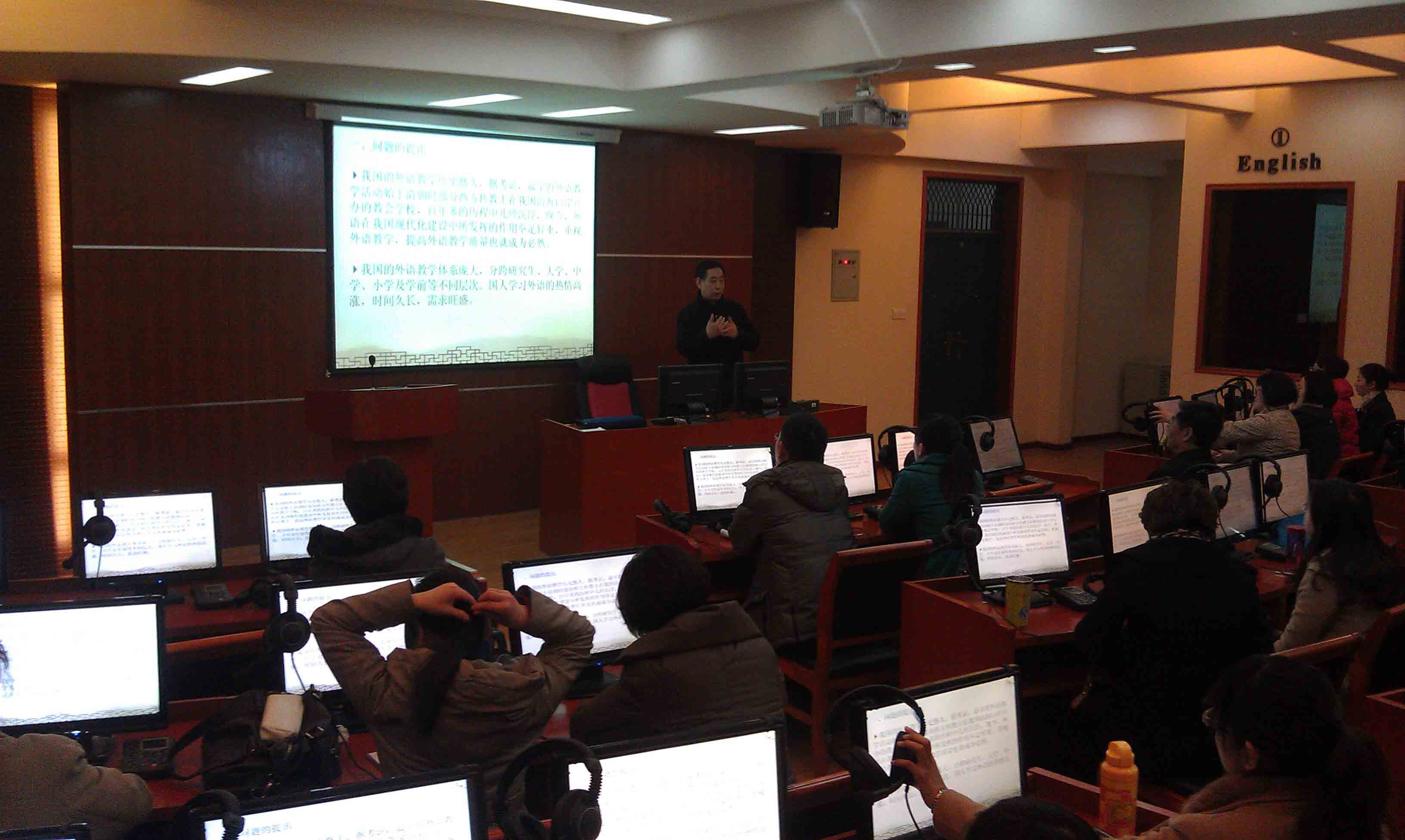 2012年3月15日下午,外语系同传实验室里座无虚席,应外语系邀请,郑州大学太阳成集团tyc33455cc张巨文教授莅临外语系,为外语系全体教师开展了题为《外语教学中的语用路向构建》以及《外语教师做科研:素养与方法》的专题讲座,外语系主任马秉义教授和全体教师参加了此次活动。