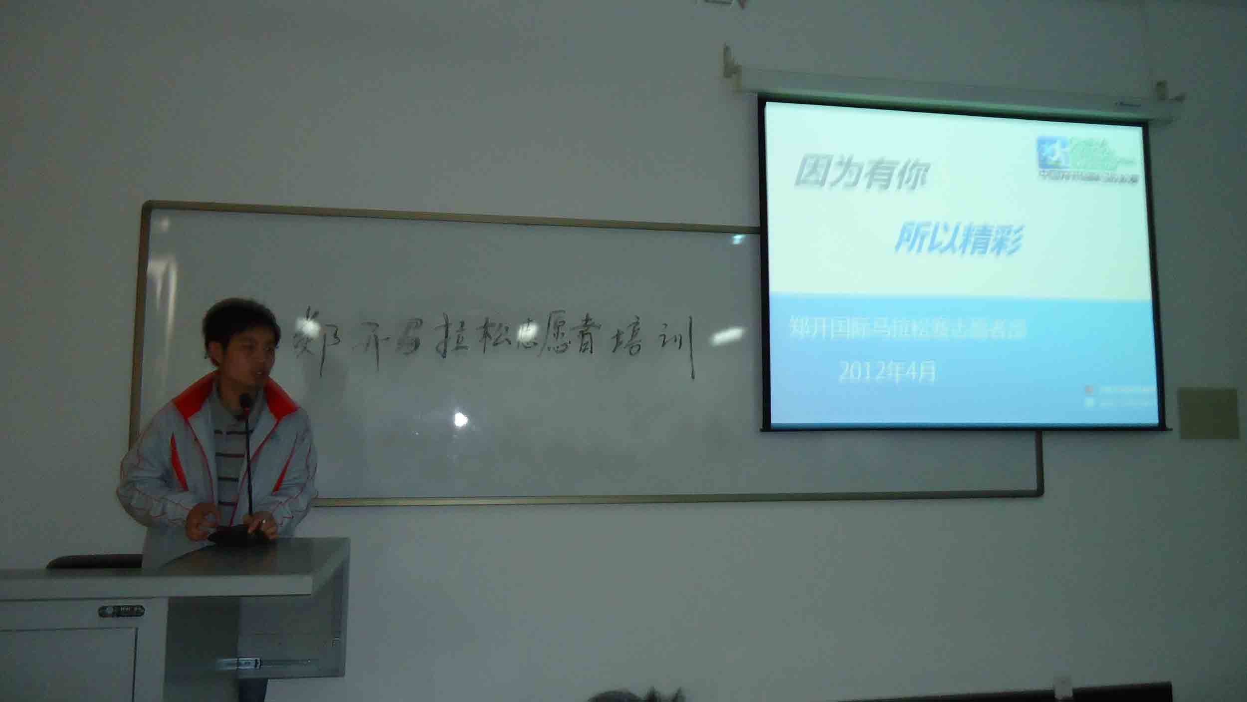 4月8日,2012年中国郑开国际马拉松赛将在郑开大道鸣枪开跑。从2012年2月29日起由院团委主办,外语系团委承办的升达经贸管理学院郑开马拉松志愿者招募活动以及志愿者培训系列活动也正式拉开帷幕。