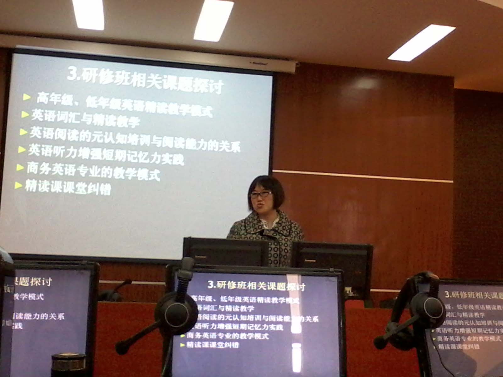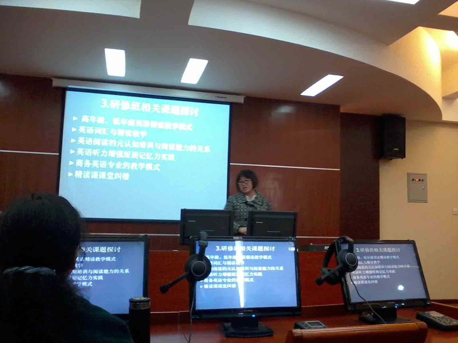 2012年3月29日下午,在外语系同声传译实验室,外语系教师廖智英副教授为全体教师做了题为“英语教学中的实证研究”的学术报告,外语系主任马秉义教授参加了此次报告会。