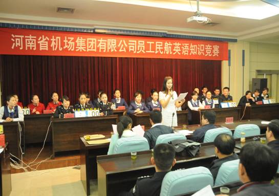 河南省机场集团有限公司举办的英语知识竞赛,旨在提高员工外语专业素质,为了提升比赛的专业性和公正性,特邀请我系三名专职英语老师担任现场评委,一名英语专业员工但任大赛主持人。