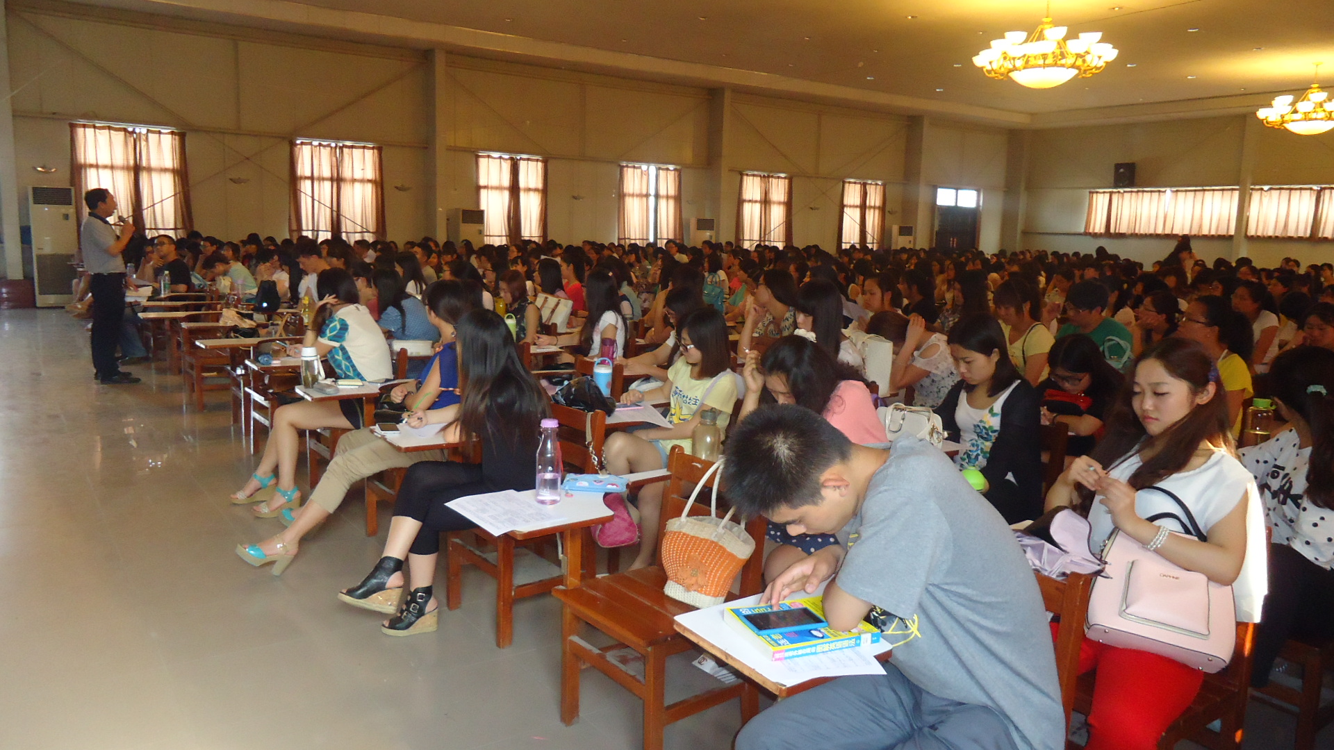 报告厅内座无虚席,王老师详细且耐心的为同学们答疑解惑。向大家介绍了考取教团队格证的相关流程,和申请的相关要求:大专毕业可申请小学初中教团队格证,本科毕业可申请小学、初中、高中、中专教团队格证,另外,普通话合格证不做具体时间要求。考试内容包括教育学心理学等多项内容,总分150,90分及格。