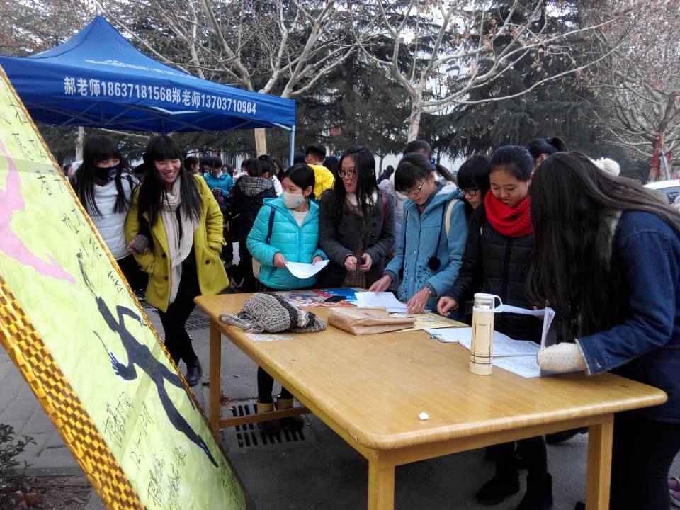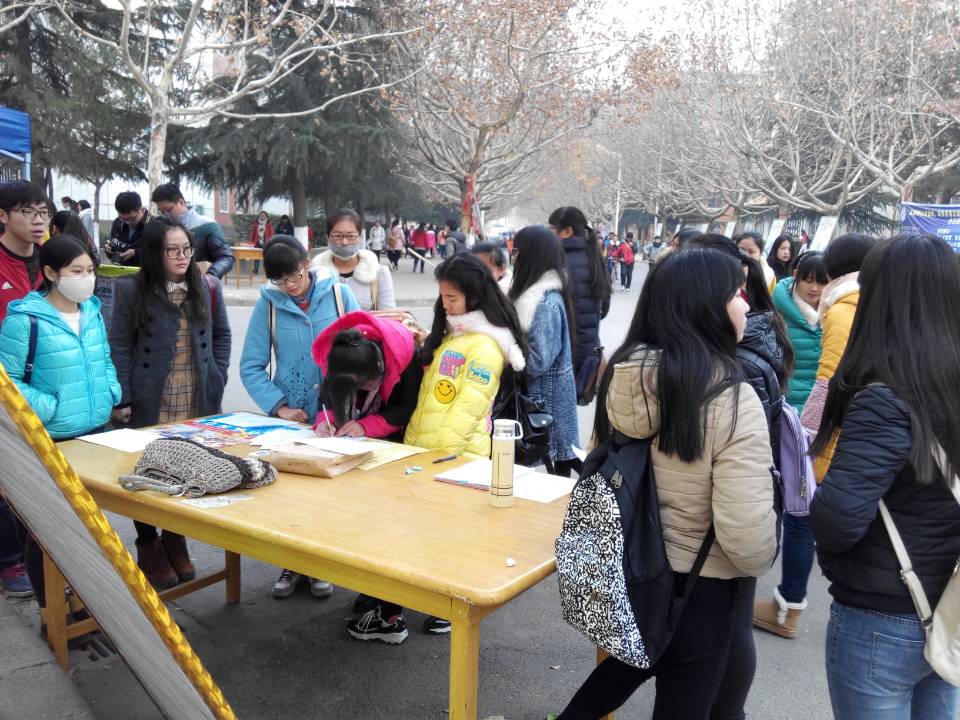 自2014年12月初起,外语系青年志愿者协会全体成员在部长李梦园,马路歌,赵海申,带领下于龙湖食府举行了为期三周的第九届郑开国际马拉松志愿者和运动员的招募活动。