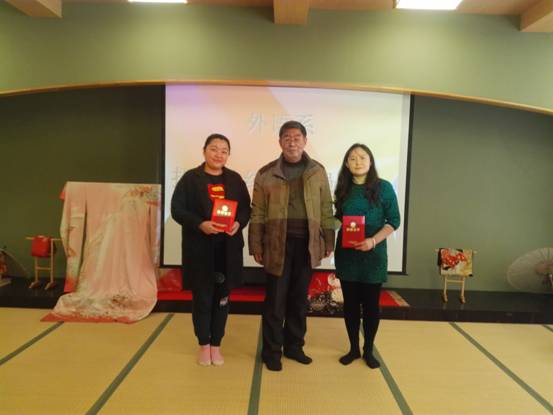 会议还对2015年度招生宣传工作的先进个人进行了表彰。通过认真的讨论和研究,依据《外语系招生宣传奖励办法》,33名同仁分获招生宣传一、二、三等奖。张洁副经理、刘景向处长和马主任分别向获奖的先进个人颁发了荣誉证书并合影留念。
