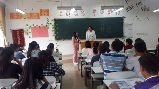 15级姬甜梦同学和赵明明同学向学弟学妹们重演了日语演讲比赛的实战场景,引起他们巨大的欢呼声。随后,姬甜梦同学用日语分享了自己学习日语的感受,赵明明同学在旁为其做现场翻译。两位学姐的精彩表现和默契配合令新生们敬佩不已,有同学现场表示要以两位学姐为目标努力学习。