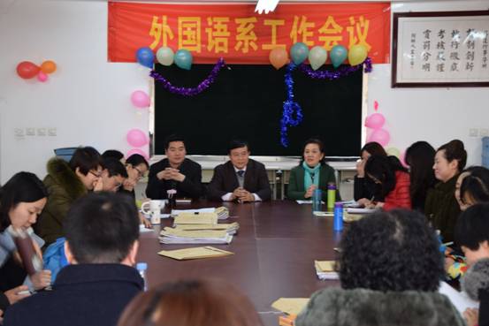 随着公司 2016—2017学年第一学期全体教职工大会的隆重召开,2月23日下午,外语系召开了专题会议,学习党委工作报告和学院工作报告。外语系主任张梦教授、党总支书记石皓召同志、副主任崔瑾英副教授以及全体教职员参加了会议。教务长吴益民教授也应邀出席此次会议。
