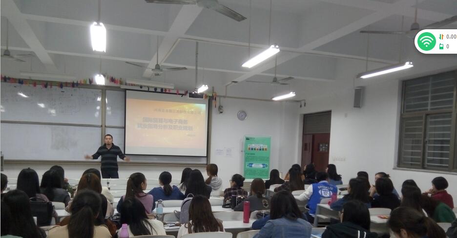 欧博先从自己刚毕业求职碰壁,然后如何从一个普通外贸业务员通过女努力一步步脱颖而出的经历讲起,和大家分享了对自己创业领域与国际贸易电子商务领域的见解。指导同学们要树立明确的目标,坚定自己的信念。整个讲座过程气氛融洽,欧博员工谈笑风生,娓娓道来,使聆听讲座的同学很受启发。(供稿:祁胜利)