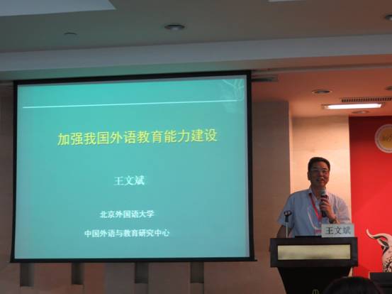 开幕式后,大会进入主旨报告环节,七位专家分别作主旨报告,他们分别是:教育部高等学校英语专业教指委主任委员仲伟合教授、教育部高等学校商务英语专业教学协作组主任委员王立非教授、教育部高等学校英语专业教学指导分委员会翻译专业教学协作组秘书长王文斌教授、教育部高等学校英语专业教学指导分委员会翻译专业教学协作组秘书长赵军峰教授、盐城师范学院的薛家宝教授、黑龙江大学应用外语学院佟敏强教授和广东金融学院外国语言与文化学院刘沛富教授。专家的主旨发言涉及应用转型背景下本科英语类三大专业改革发展的指导原则与顶层设计、人才培养模式的特色创新、产教融合与校企合作、服务地方与行业的需求、双师型教师的培养发展、改革试点的经验总结等主要议题。
