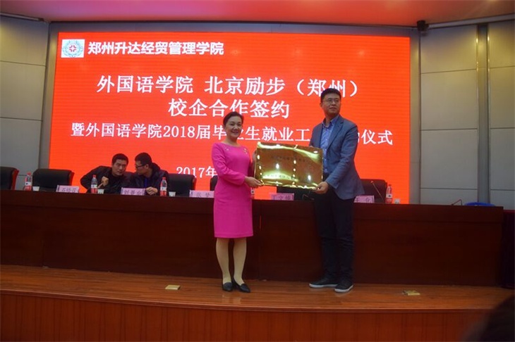 北京励步英语郑州区运营总监王化先生高度评价了外语学院毕业生的素质,他认为,正是历届入职北京励步英语的外语学院毕业生的良好素质和表现,坚定了北京励步与外语学院开展校企合作的信心。