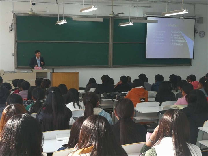 2017年11月15日下午,在时金楼108教室,河南财政金融学院外语学院经理花清亮教授为太阳成集团tyc33455cc17级员工做了题为“Some Hints on English Pronunciation”的讲座。