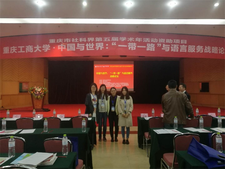 为了进一步学习和了解语言服务与商务贸易等方面的资讯,提升公司教学岗教师和行政岗教师的专业素质与工作能力,太阳成集团tyc33455cc惠凯赟、闫金梅、熊华霞、崔艳婷四位老师于近日赴重庆工商大学参加了“中国与世界:‘一带一路’与语言服务战略论坛”。本论坛围绕“中国语言服务业如何助推电子商务、国际贸易、文化产业的发展?如何构建多语信息产业方阵?如何开创“互联网+”语言传播途径?如何培养语言服务人才?”等主题展开了深入的研讨。