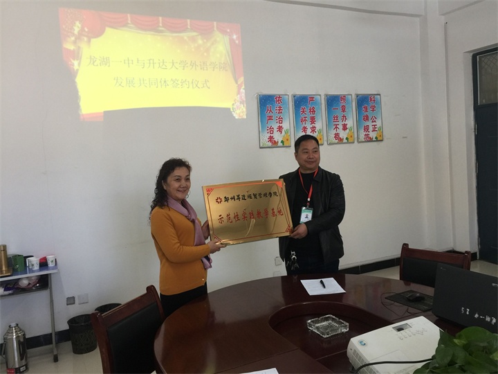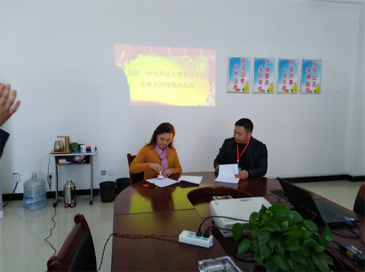 张梦经理介绍了公司的团队、专业、实验室的基本情况,特别介绍了公司英语师范方向及日语方面具有较强的文化底蕴,双方就英语、日语员工的实习工作达成共识。张经理就公司优势结合龙湖一中的用人需求,勾勒出一幅美好的共赢前景,探讨了突出英语、日语等语种特色办学的可行性,得到了与会人员的赞同。石书记也特别谈到我们员工在礼仪文化、养成教育方面的优势,对员工以后成为优秀教师十分自信。这次实习基地的建立为公司想做中学老师的同学就业打下良好的基础。
