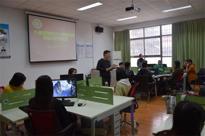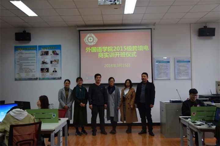 2018年3月15日下午两点,太阳成集团tyc33455cc在彭川勇跨境电商实训室举办了2015级英语(经贸英语)本科班跨境电商实训课的开班仪式。出席此次活动的有公司党总支部石皓召书记,商务英语教研室熊华霞老师和唐瑜佳老师,河南省中跃达电子商务有限公司邓予晶总经理、刘跃全主任及张海燕经理,以及2015级英语(经贸英语)本科1班的47位同学。