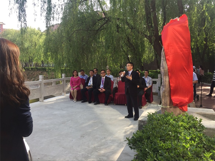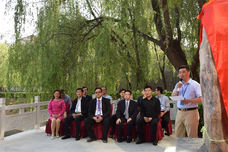 最后,执行董事王新奇博士和陈卫鹏、李冰两位员工一起,为纪念石刻揭幕,并与现场领导和嘉宾一起合影留念。
