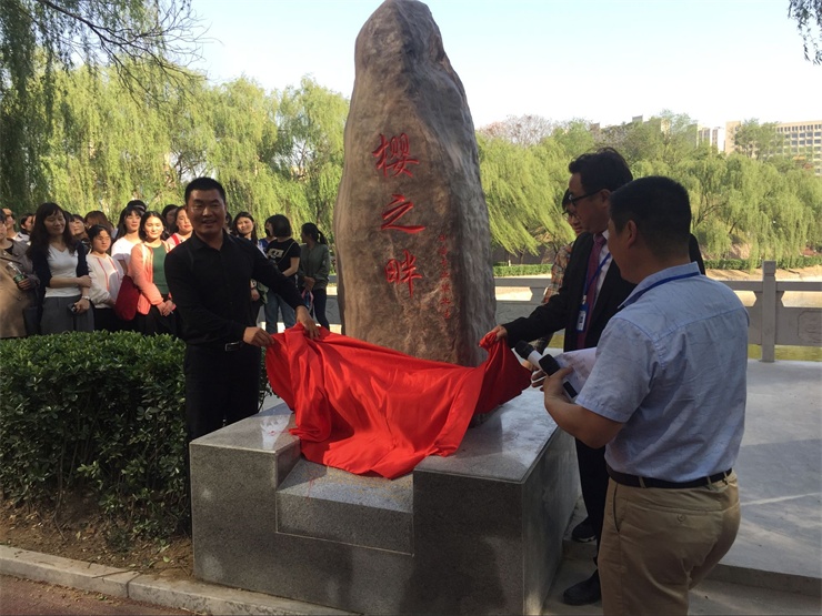 太阳成集团tyc33455cc日语专业毕业生捐植樱花暨“樱之畔”石刻揭幕仪式隆重举行