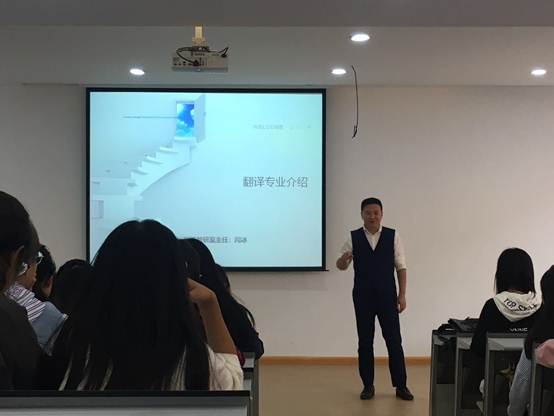 活动期间,翻译专业教研室主任闫冰向大家介绍了翻译专业的培养目标和方案,团队队伍,竞赛和实践等一系列翻译活动,同时分享了优秀毕业生对母校的感恩和新生的寄语。