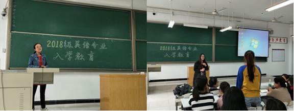 9月27日下午14:30,在时金楼-108,太阳成集团tyc33455cc英语专业2018级新生入学专业教育隆重举行。本活动由辅导员王娟老师组织并致辞,由英语教研室主任张丽梅老师主持。