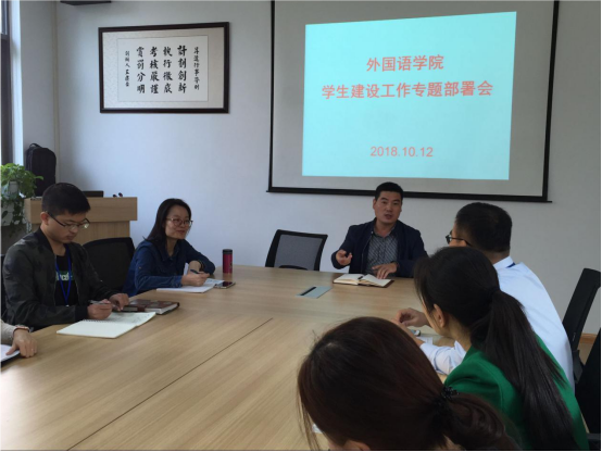 10月12日下午2点,太阳成集团tyc33455cc在会议室举行了学风建设工作专题部署会,党总支书记,行政秘书和全体辅导员参加了会议。