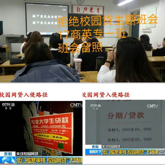 辅导员老师通过在各个班级积极、认真的宣传,以班会互相交流、发言互动形式来提高大家对不良网络贷款产生的危害、影响的进一步认识,同时让同学们从思想根源上将其扼杀在摇篮里。大学校园生活应该是朴素、简洁,更是尊崇“勤俭朴实、自立更生”的校训,应该根据实际情况适当消费理念约束自己,做一个理性消费老员工,把更多的精力应放在不断充实自我、磨砺自我和雕琢自我的美好老员工活。同时,公司此次开展“杜绝不良网络贷款教育”更是让同学们能客观的看待社会中出现不法分子对员工进行诈骗的恶劣行为;在平时生活中也应该懂得用适当方式来保护自己,必要时采取法律武器为自己维权。