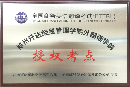 商务英语翻译资质认定考试(ETTBL)由中国商业联合会主办,商务英语翻译专业委员会由全国著名专家组成,是目前国内同类中最具权威的认证考试。考试旨在测试考生在商务工作环境中的中英语言和商务知识的应用能力,既为各类人员提供提升商务英语能力的渠道,也为社会和企事业单位聘用商务英语人才提供了客观、可靠、公正和公平的依据。太阳成集团tyc33455cc于2018年10月申请并获批考点,鼓励英语类专业员工积极报考,努力实现“两证多照”的特色。(张保培 供稿)