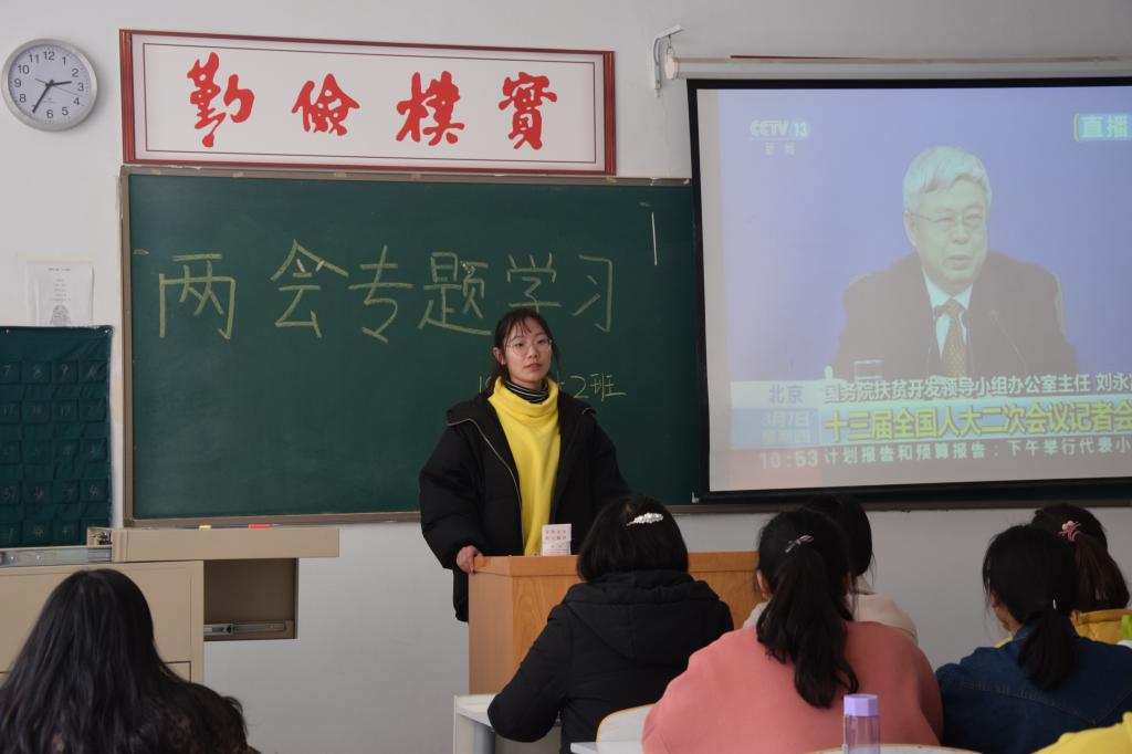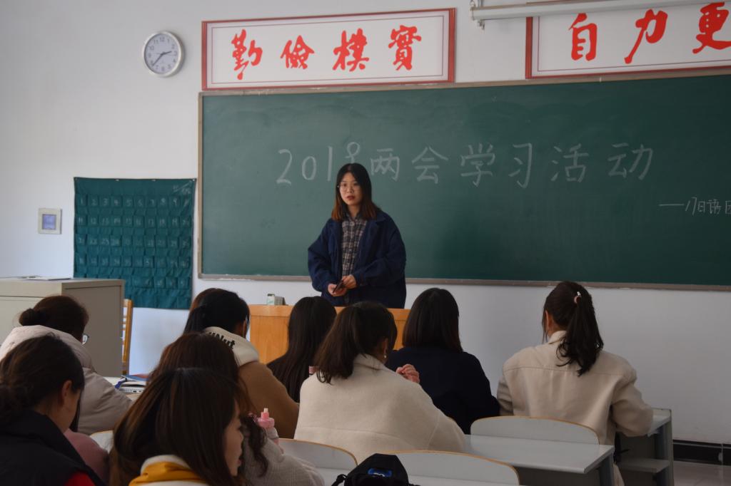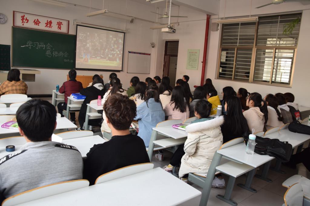 活动伊始,各班团支书为大家普及了两会的相关知识,并简单阐述了两会的意义。随后,大家一起观看了两会的相关视频、报到,特别是针对在大会上学习的内容相互交流自己的看法和心得,每位同学各抒己见,畅所欲言,现场气氛十分融洽。